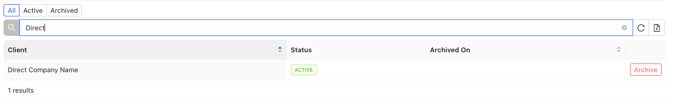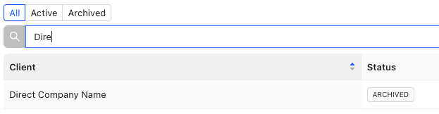 - Find the client you wish to archive from the table.