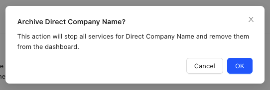 Rather than permanently deleting clients, we use archiving to preserve historical data and maintain audit trails. Archiving a client removes them from active status while keeping their records intact for compliance and reporting needs. This gives you the same practical result as deletion but prevents accidental loss of important data. You can pause or resume all INFIMA services and communications for a client through archiving and reinstatement. The affected services include: